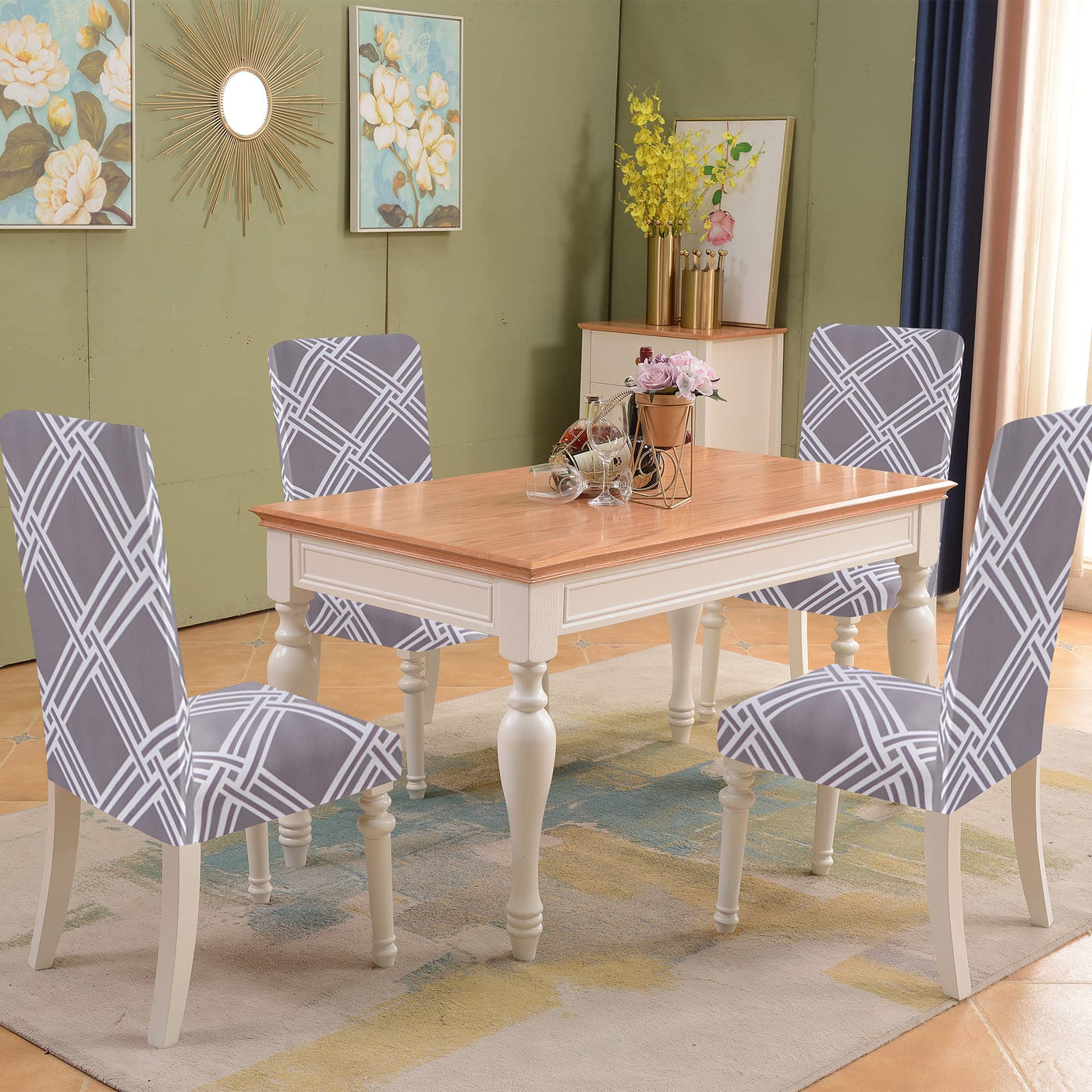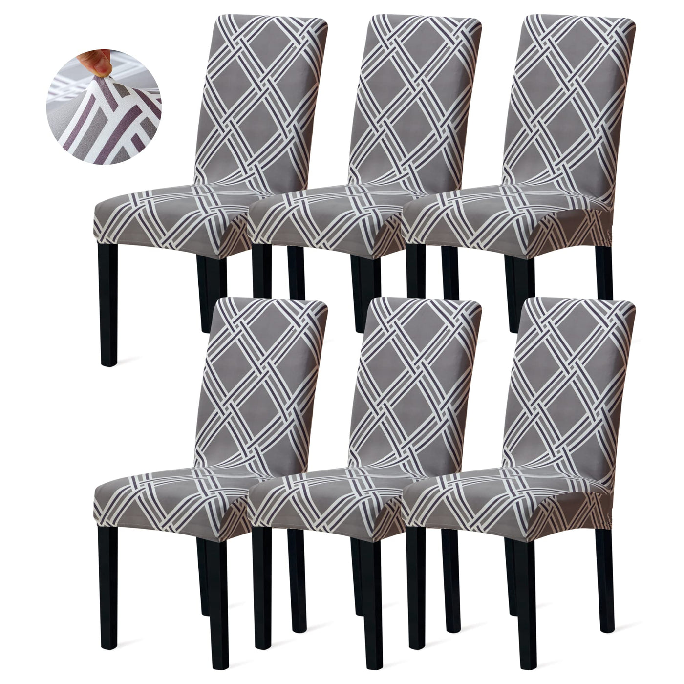 Sufdari Dining Chair Covers,Kitchen Chair Cover,Parsons Chair Slipcover,Spandex Chair Protectors For Dining Room Stretch Chairs Cover Set Of 6 -Gray Diamond