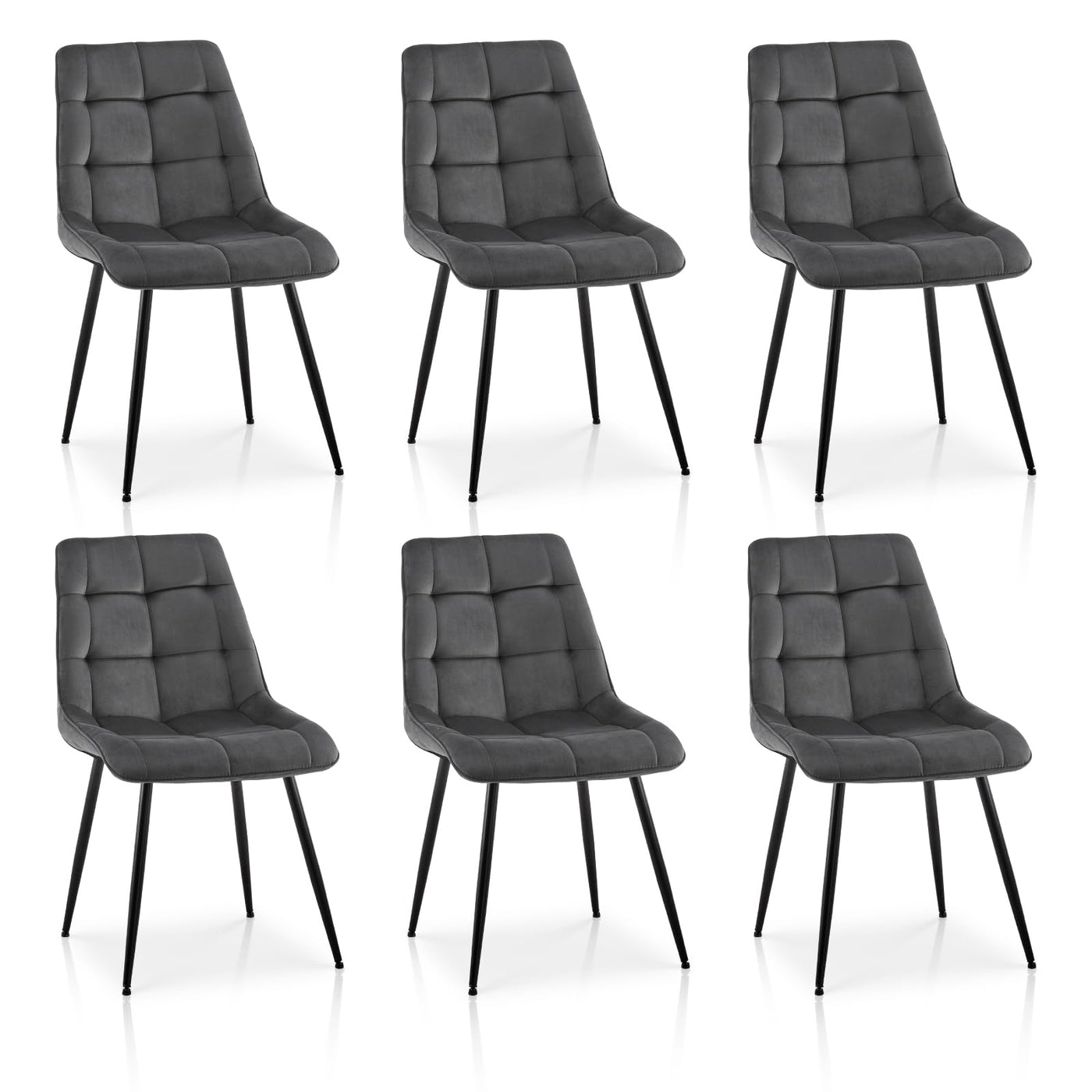 Tukailai Armless Velvet Dining Chairs Set Of 6 Kitchen Chairs, Soft Comfy Upholstered Seat Mid-Century Modern Side Chair Accent Chairs With Backrest Metal Legs Dining Living Room Lounge Chairs Gray