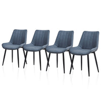 Tukailai Faux Leather Dining Chairs Set Of 4, Modern Linear Design Kitchen Chairs With Upholstered Seat And Metal Legs, Comfy Leisure Chairs For Guest Reception Restaurant Commercial (Blue)