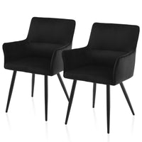 Tukailai Leisure Dining Chairs Set Of 2, Velvet Upholstered Seat Kitchen Chairs With Armrests, Backrest And Metal Legs, Comfy Accent Lounge Chair For Reception Room Living Room (Black)