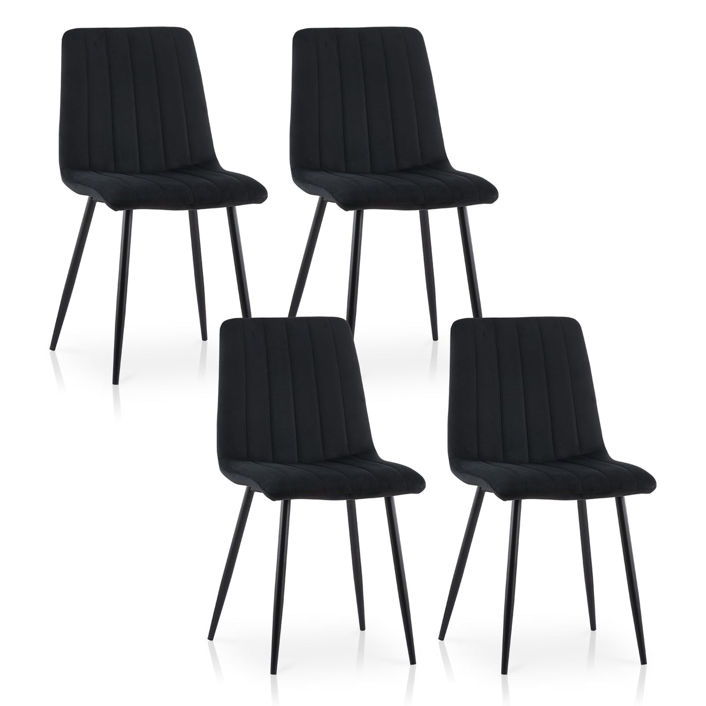 Tukailai Velvet Dining Chairs Set Of 4, Upholstered Kitchen Chairs With Backrest And Sturdy Metal Legs, Modern Leisure Reception Chairs For Lounge Living Room Bedroom Office (Black)