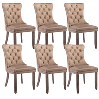 Upholstered Dining Chairs Set Of 6, Velvet Dining Room Chairs With Back Ring Pull Trim And Solid Wood Legs, Tufted Wingback Kitc
