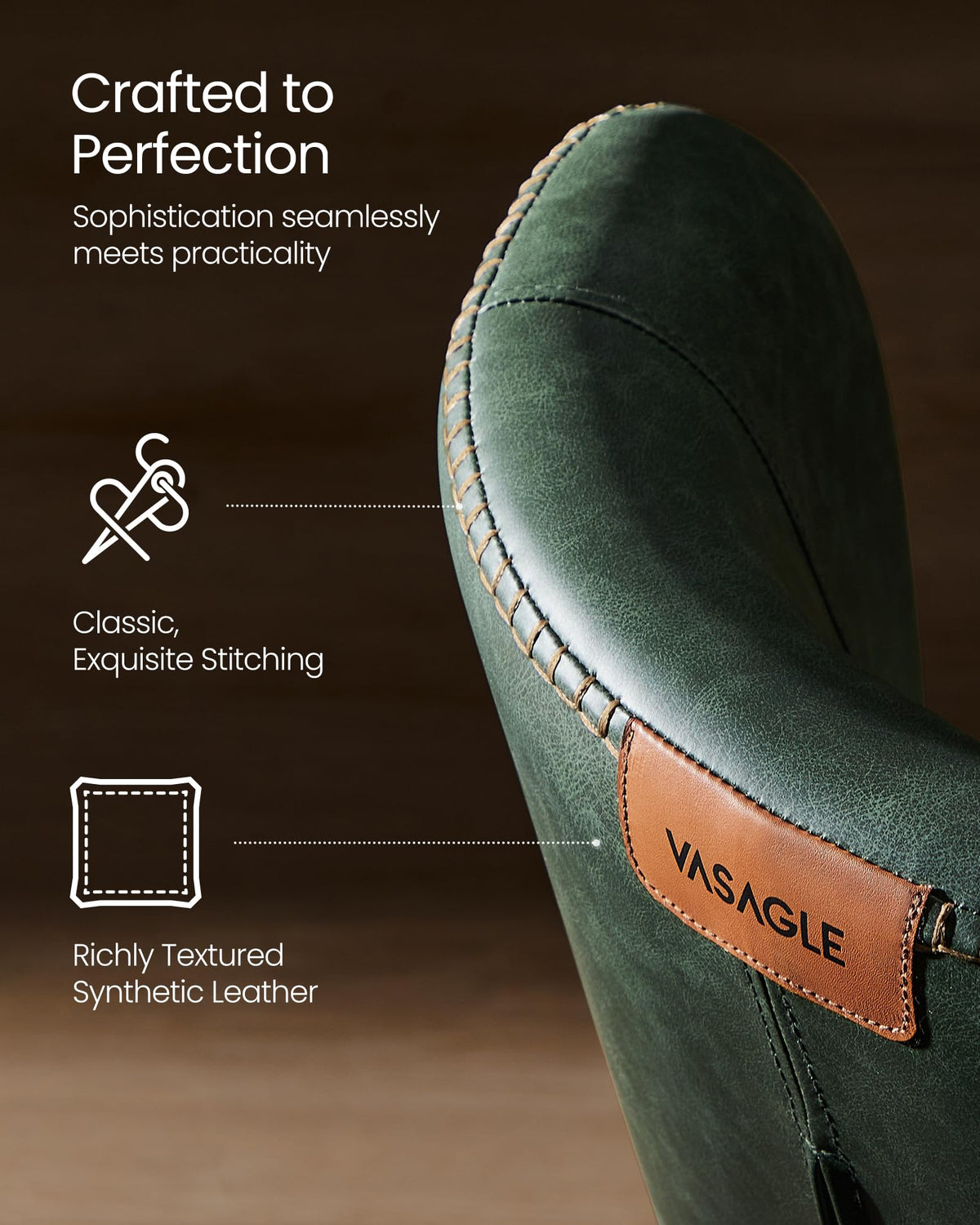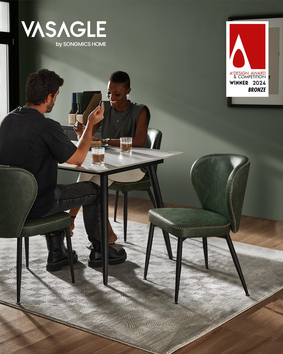 Recognized by the prestigious Bronze A' Design Award 2024, these dining chairs from the VASAGLE EKHO Collection, featuring refined stitching and richly textured synthetic leather, redefine your space with timeless charm and personal expression. Immerse yourself in their mid-century modern design, where your style takes center stage. Specifications: - Color: Forest Green - Material: Steel, 25D High-Resilience Foam, PU (Polyurethane) Leather, Plywood - Product Size: 21.7'D x 20.5'W x 31.1'H (55 x 52 x 79 cm) - Seat Height: 17.7' (45 cm) - Total Product Weight: 36.2 lb (16.4 kg) - Max. Overall Static Load Capacity per Seat: 265 lb (120 kg) Package Contents: - 2 x Dining Chair - 2 x Accessory Kit - 1 x Instructions VASAGLE Notes: - Each dining chair can support up to 265 lb. Please do not exceed this limit.