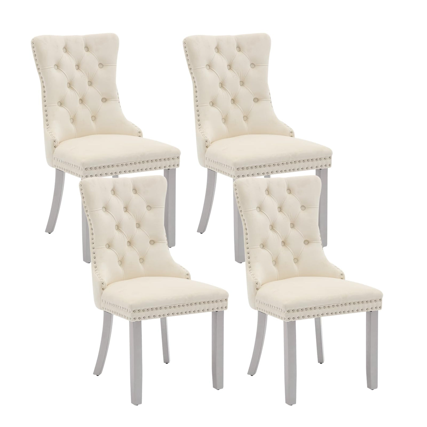 Velvet Dining Chairs Set Of 4, Kitchen & Dining Room Chairs, Upholstered Dining Chairs With Back Ring Pull And Silver Solid Wood