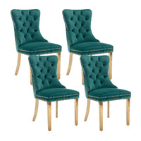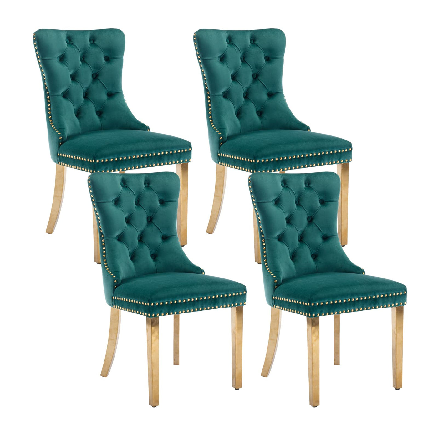 Velvet Dining Room Chairs Set Of 4, Upholstered Dining Chairs With Back Ring Pull Trim And Golden Stainless Steel Legs,Modern Di