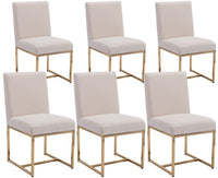 Vescasa Linen Upholstered Dining Chairs Set Of 6, Mid Century Modern Padded Chair With Gold Metal Frame For Restaurant, Dining R