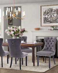 Vicbarley Velvet Dining Chair Set Of 4 Upholstered Tufted Dining Room Chair With Nailhead Trim And Solid Wood Legs For Kitchen, Restaurant,Grey