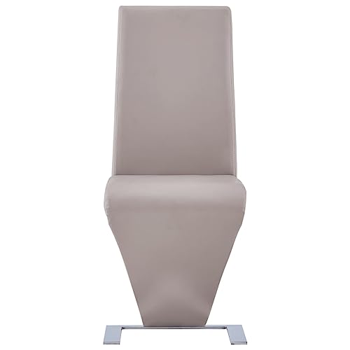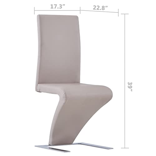 Vidaxl Dining Chairs 2 Pcs, High Back Kitchen Armless Side Chair With Zigzag Shape, Dining Room Chair For Living Room, Cappuccino Faux Leather