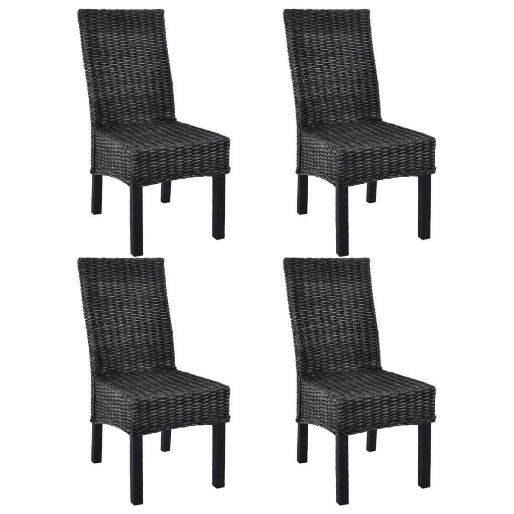 vidaXL Dining Chairs Set of 4 - Black Kubu Rattan & Mango Wood, Handmade, Simple Elegant Design, Comfortable, Easy to Assemble