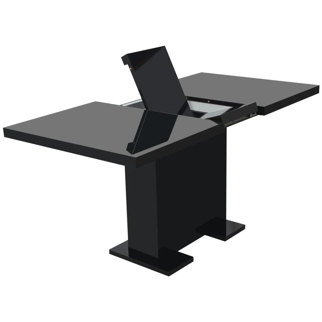 This extendable dining table is a perfect alternative for small kitchens and dining areas with limited space. The high gloss black finish reflects the light, which will greatly contribute to your dining experience.Made of high quality MDF, the table is stable and durable. It is easy to clean with a damp cloth.Assembly is very easy. Colour: glossy black Material: MDF + Steel Dimensions when folded: 120 x 80 x 75 cm (L x W x H) Dimensions (unfolded): 150 x 80 x 75 cm (L x W x H) Easy to assemble