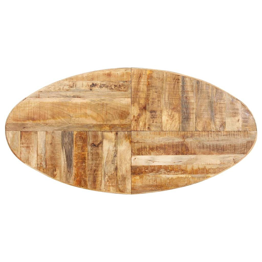 vidaXL Oval Dining Table in Rough Mango Wood and Powder-Coated Steel with Unique Grains - Spacious Surface and Easy Assembly for Kitchen and Dining Room.