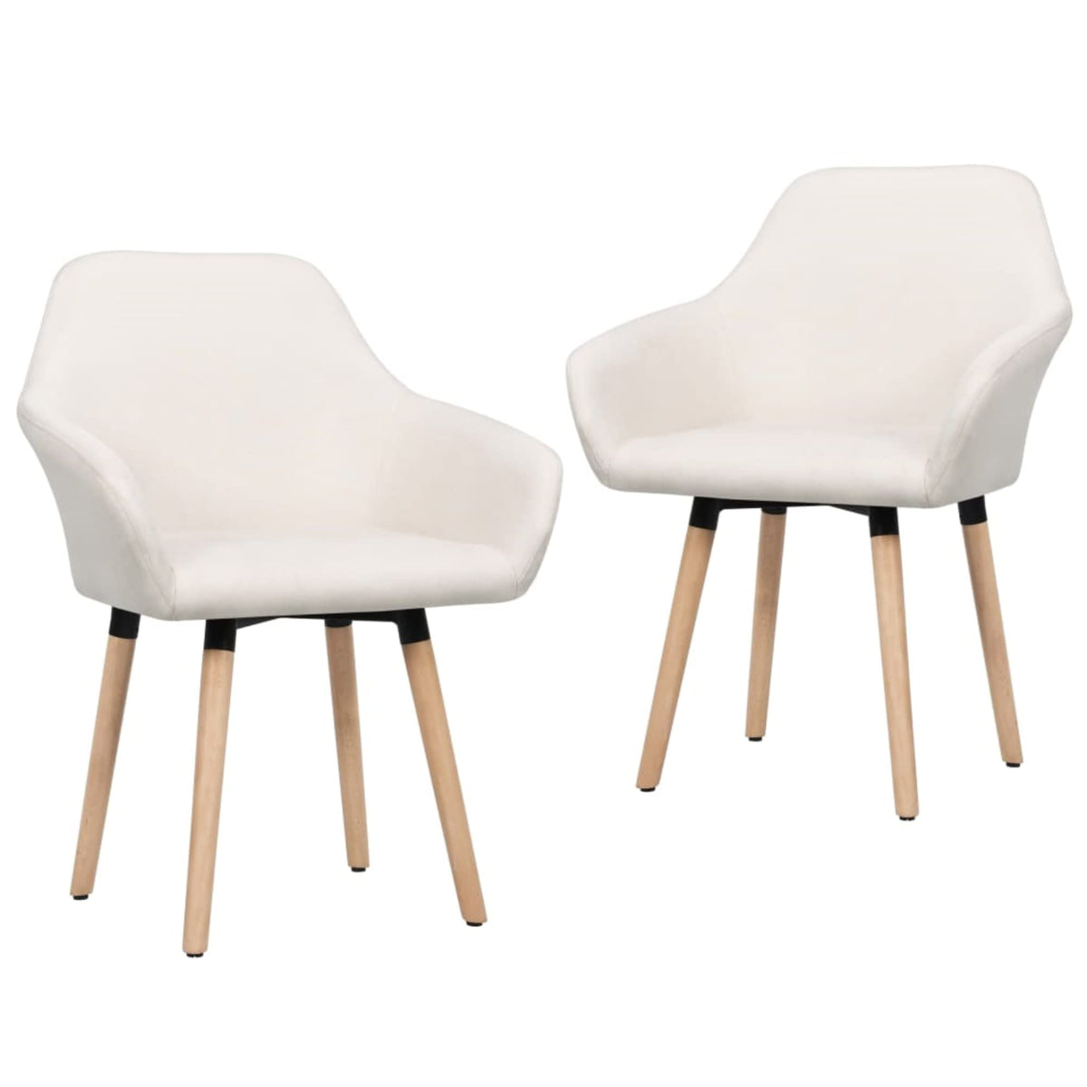 vidaXL Set of 2 Dining Chairs with Armrests, Cream Fabric Upholstery, Black Metal & Solid Beech Wood Legs