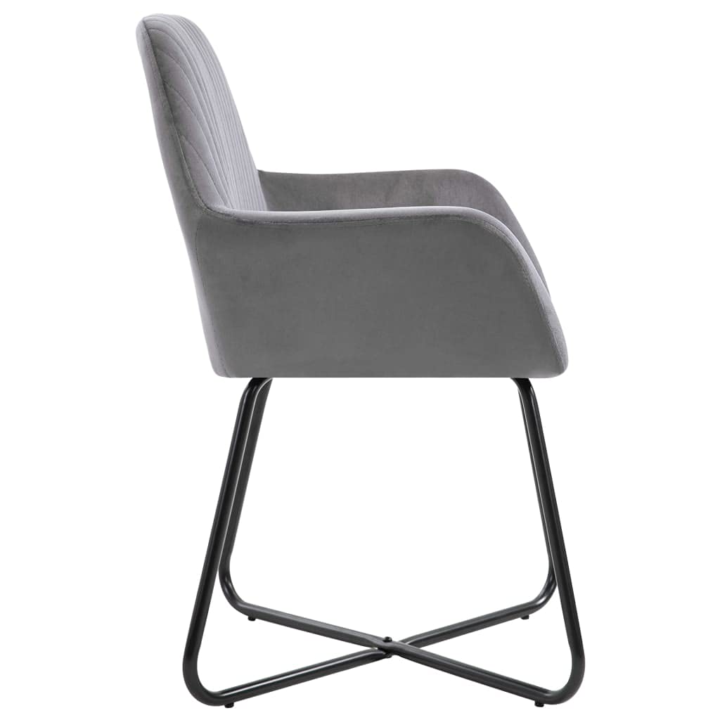 vidaXL Set of 4 Gray Velvet Dining Chairs with Armrests and Backrest, Ergonomic Modern Chairs with Powder-Coated Steel Legs for Dining or Living Room