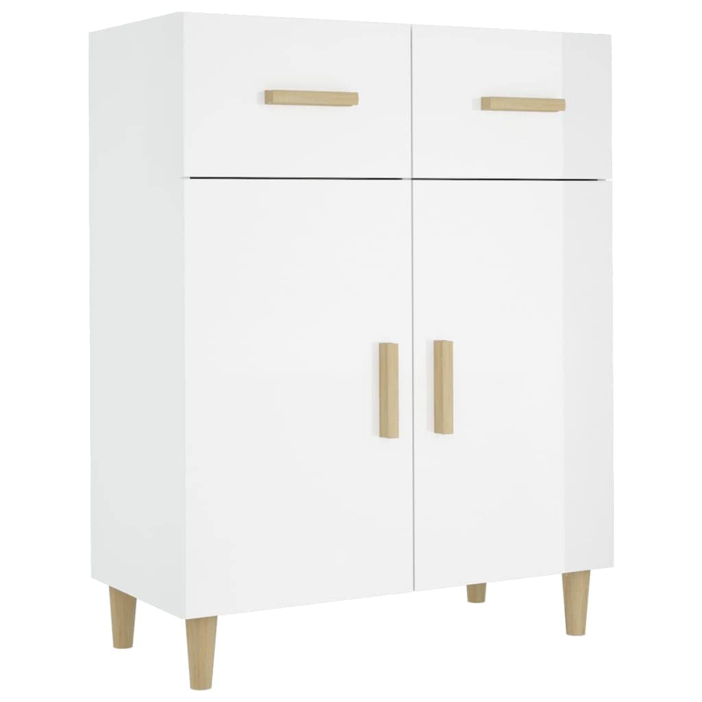 812192 vidaXL Sideboard High Gloss White 27.4"x13.4"x35" Engineered Wood This classic sideboard is meant to make a decorative and practical addition to your home. Premium material: The engineered wood is of exceptional quality with smooth surface and also features strength, stability and resistance to moisture.Ample storage: The side cabinet has 2 doors and 2 drawers, providing ample storage space for keeping your various daily essentials well organized and within easy reach. The top of this cabinet is great for displaying your ornamental items.Easy cleaning: This storage cabinet is easy to clean with a damp cloth.Stylish design: This buffet sideboard features a stylish design, which will introduce an air of unique charm to your current interior decor! Warning:In order to prevent overturning, this product must be used with the wall attachment device provided.