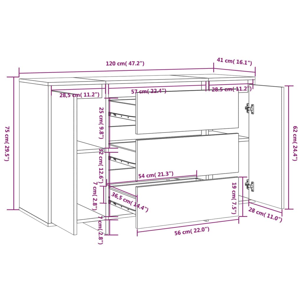 vidaXL Sideboard with 3 Drawers Concrete Gray 47.2"x16.1"x29.5" Chipboard