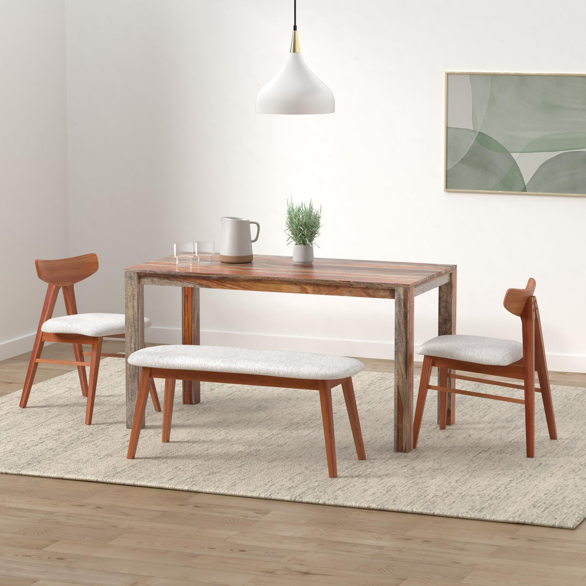 This dining table is made of solid sheesham wood. Sheesham is a tropical hardwood which is famous for its rich grains, also known as rosewood or palisander. The dining table is fully handmade and each step of the process is carried out with the greatest care, be it polishing, painting or lacquering.