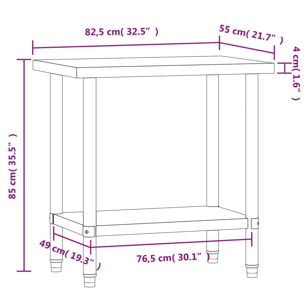 vidaXL Stainless Steel Kitchen Work Table - 32.5x21.7x33.5 for Food Prep, Restaurant & Commercial Use, with Bottom Shelf & Adjustable Feet