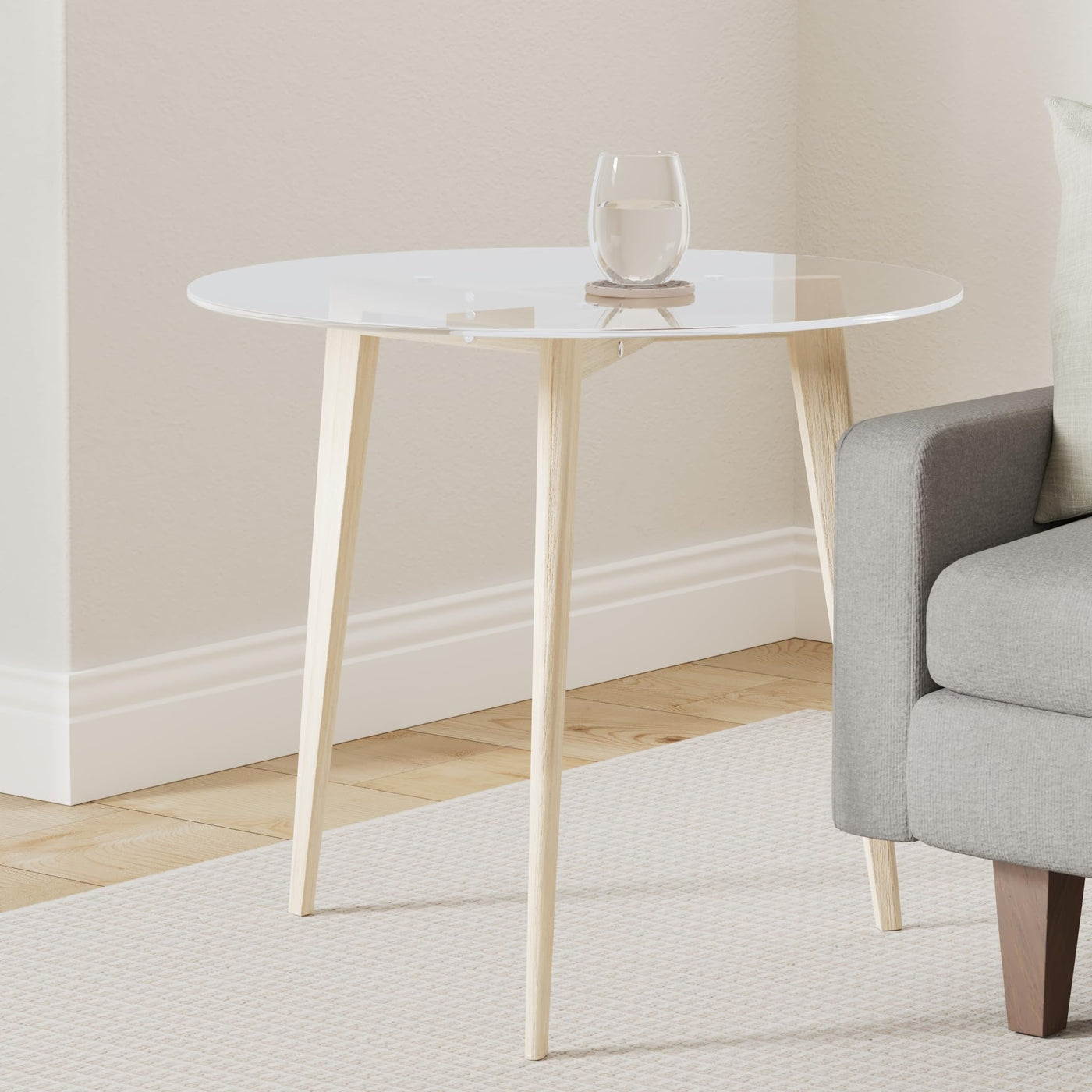 The trendy dining table with clean lines is an excellent choice for your dining room or kitchen. Its simple elegance makes everyday mealtime special. The dinner table features a smooth tempered glass tabletop that is easy to clean with a damp cloth. The solid oak wood legs add to its solid construction, bringing great stability and durability.