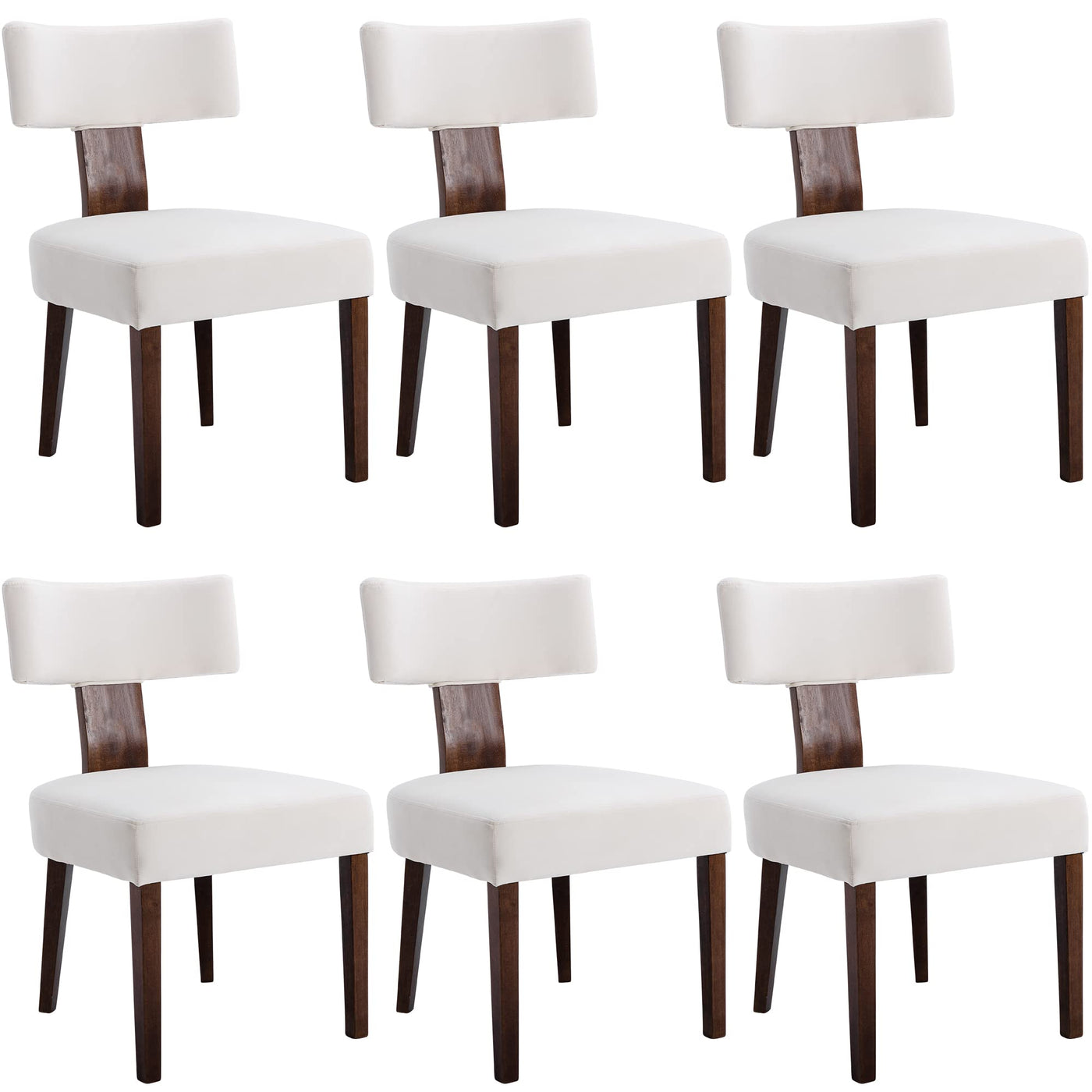 Wahson Farmhouse Kitchen & Dining Room Chairs Set Of 6, Retro Velvet Upholstered Dining Chair With Hardwood Legs, Cream