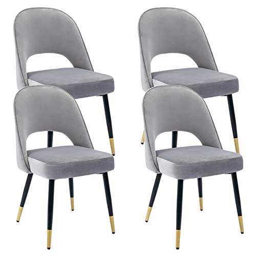 Wahson Velvet Dining Chairs Set Of 4 Side Chairs Kitchen Corner Chairs With Metal Legs, Modern Leisure Chairs For Dining Room/Living Room, Grey