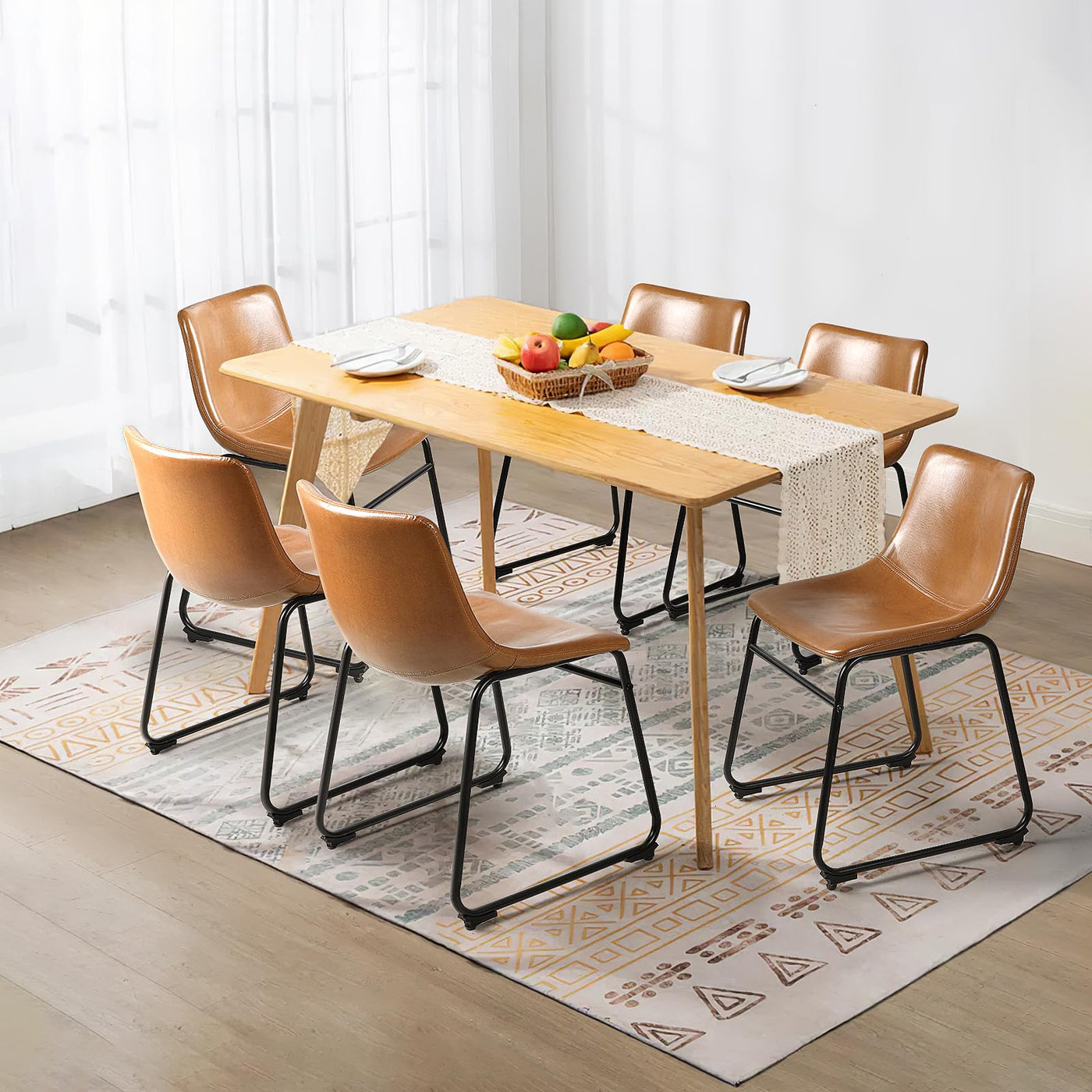 Waleaf Dining Chairs,Faux Leather Dining Chairs Set Of 6,18 Inch Kitchen Dining Room Chairs With Backrest And Metal Leg,Mid Cent