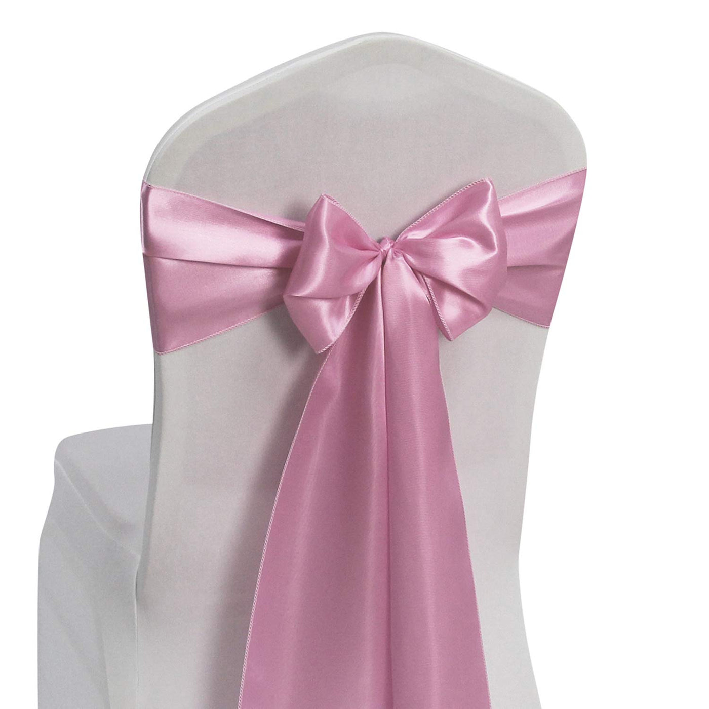 Welmatch Pink Satin Chair Sashes Ties 12 Pcs Wedding Banquet Party Event Decoration Chair Bows (Pink, 12)