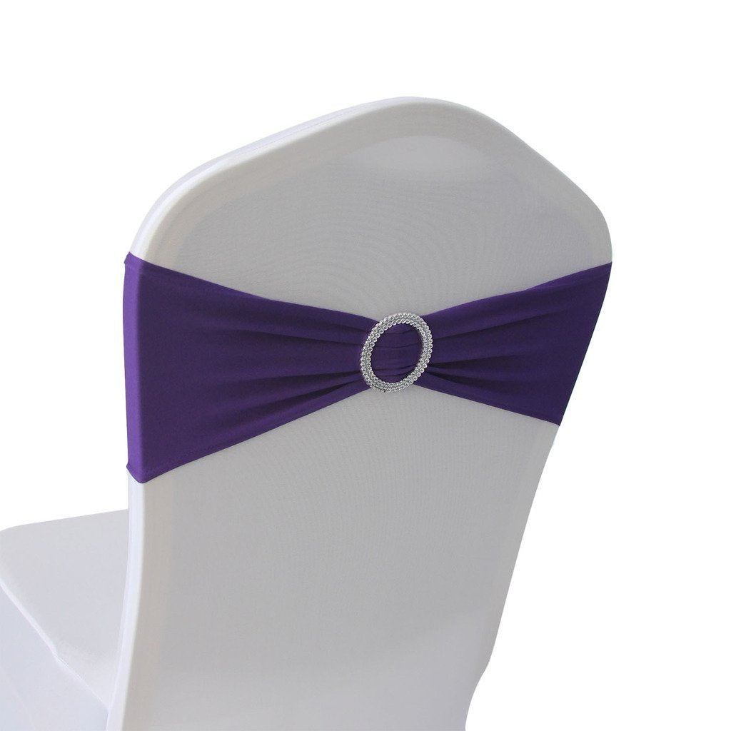 Welmatch Purple Spandex Chair Bands Sashes - 50 Pcs Wedding Banquet Party Event Decoration Chair Bows Ties (Purple, 50)