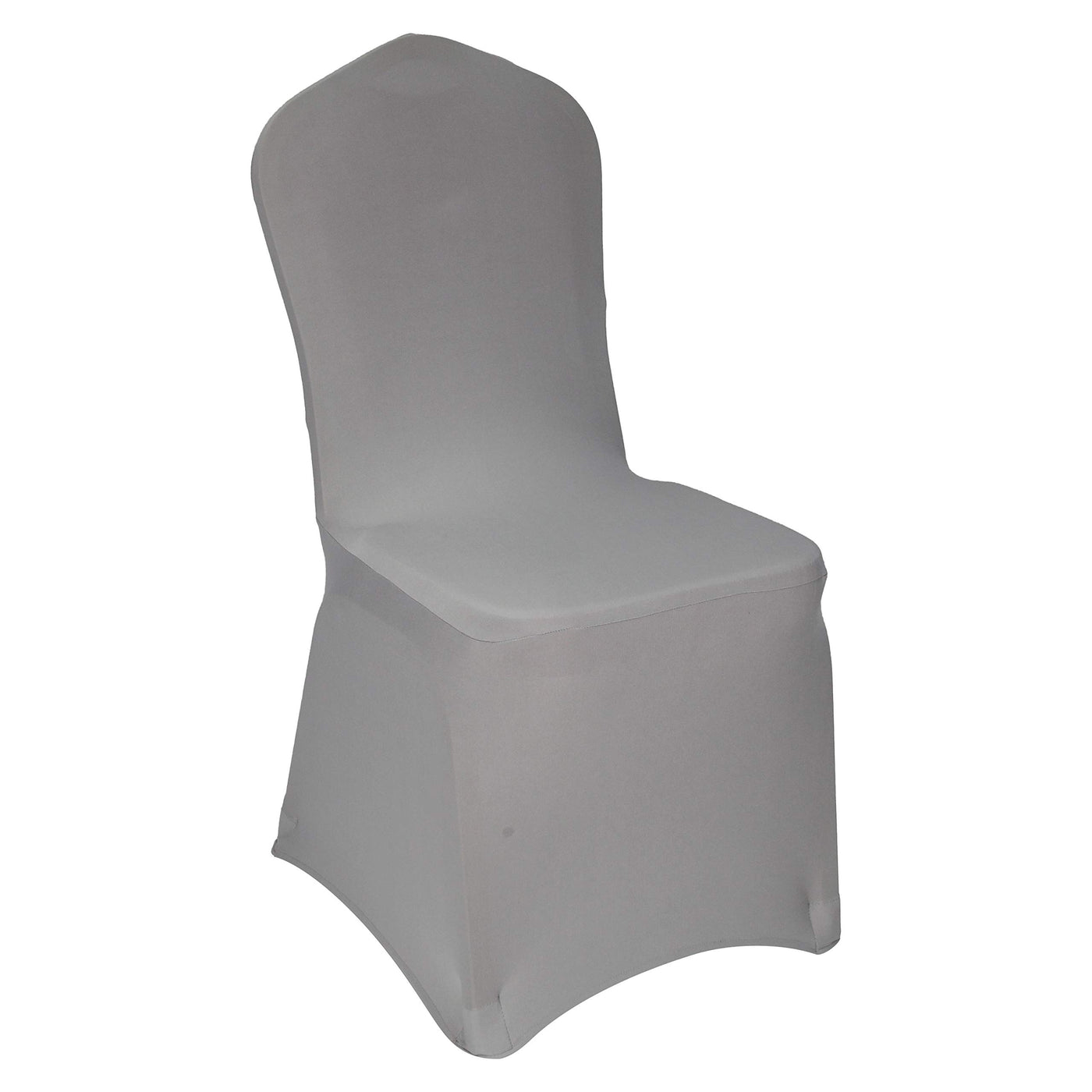 Q: What materials are used in WELMATCH Silver Stretch Spandex Chair Covers?A: The WELMATCH Silver Stretch Spandex Chair Covers are made from a blend of 90% Polyester and 10% Spandex, ensuring a soft and durable material that fits snugly on your chairs.