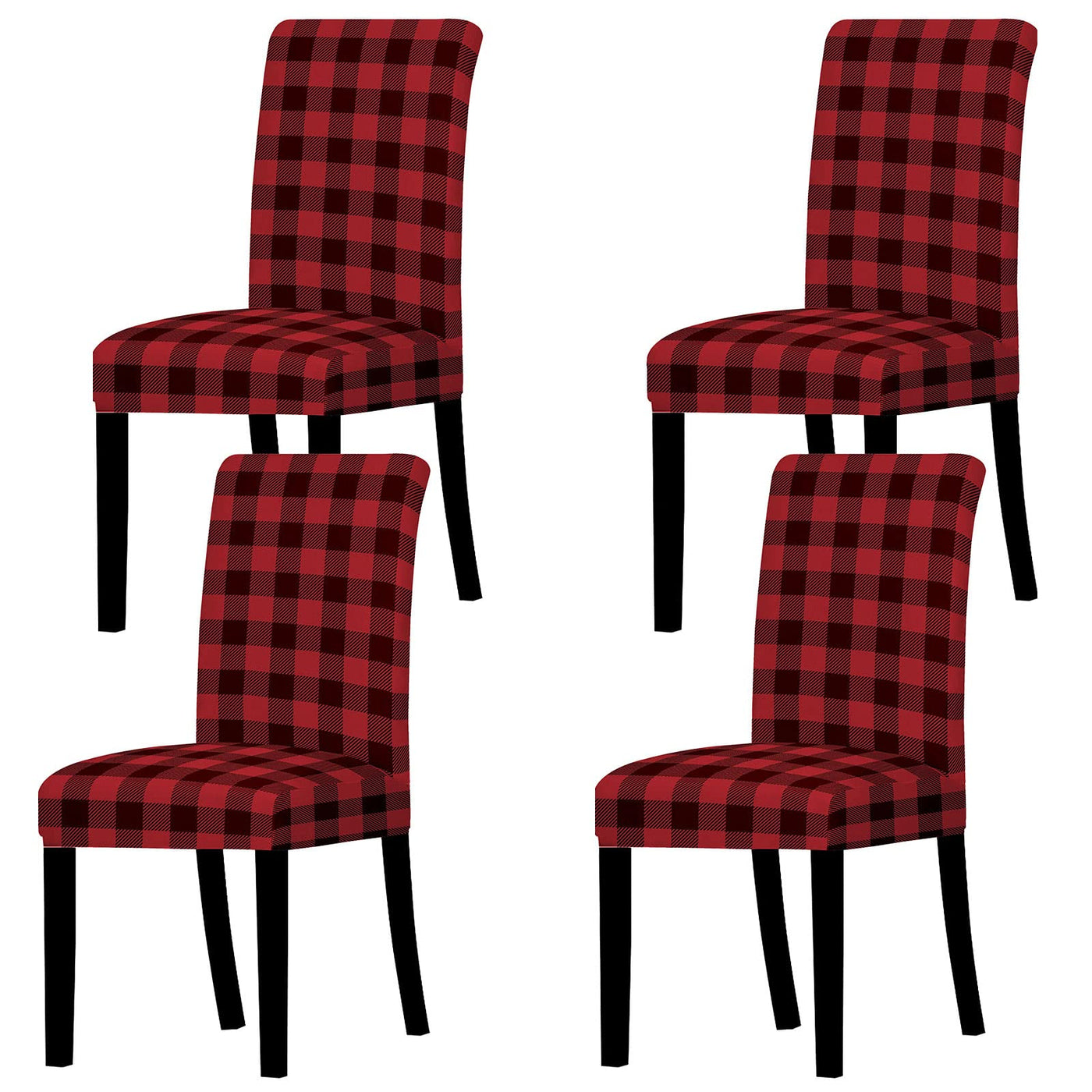 Whaline Buffalo Check Chair Covers Red Black Plaid Dining Chair Slipcovers Protector Removable Stretch Elastic Seat Covers For Party Kitchen Home Hotel Office Restaurant Decoration, 4Pcs
