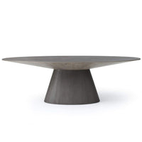 A sophisticated mashup of sleek and chic contemporary style and on-trend industrial design, this alluring dining table anchors your dining room with charming eclectic appeal. Crafted out of solid gray oak veneer finish, the rustic tabletop strikes a classic oval silhouette with textured woodgrain feel. The pedestal base features an architectural, solid frame design to support the tabletop. Perfect for intimate dinners and family feasts alike, this dapper dining table comfortably seats up to eight in style.