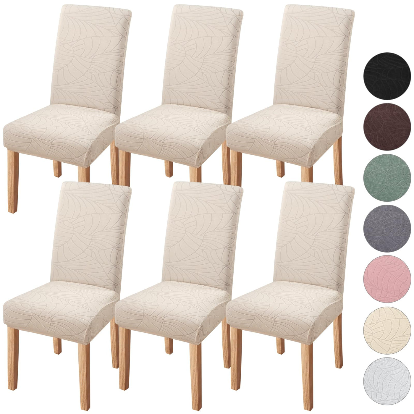 Yisun Dining Chair Covers Set Of 6, Stretch Jacquard Chair Covers Parsons Chair Covers Removable Washable Chair Slipcover Protector For Dining Room, Kitchen, Ceremony (Leaves-Beige)