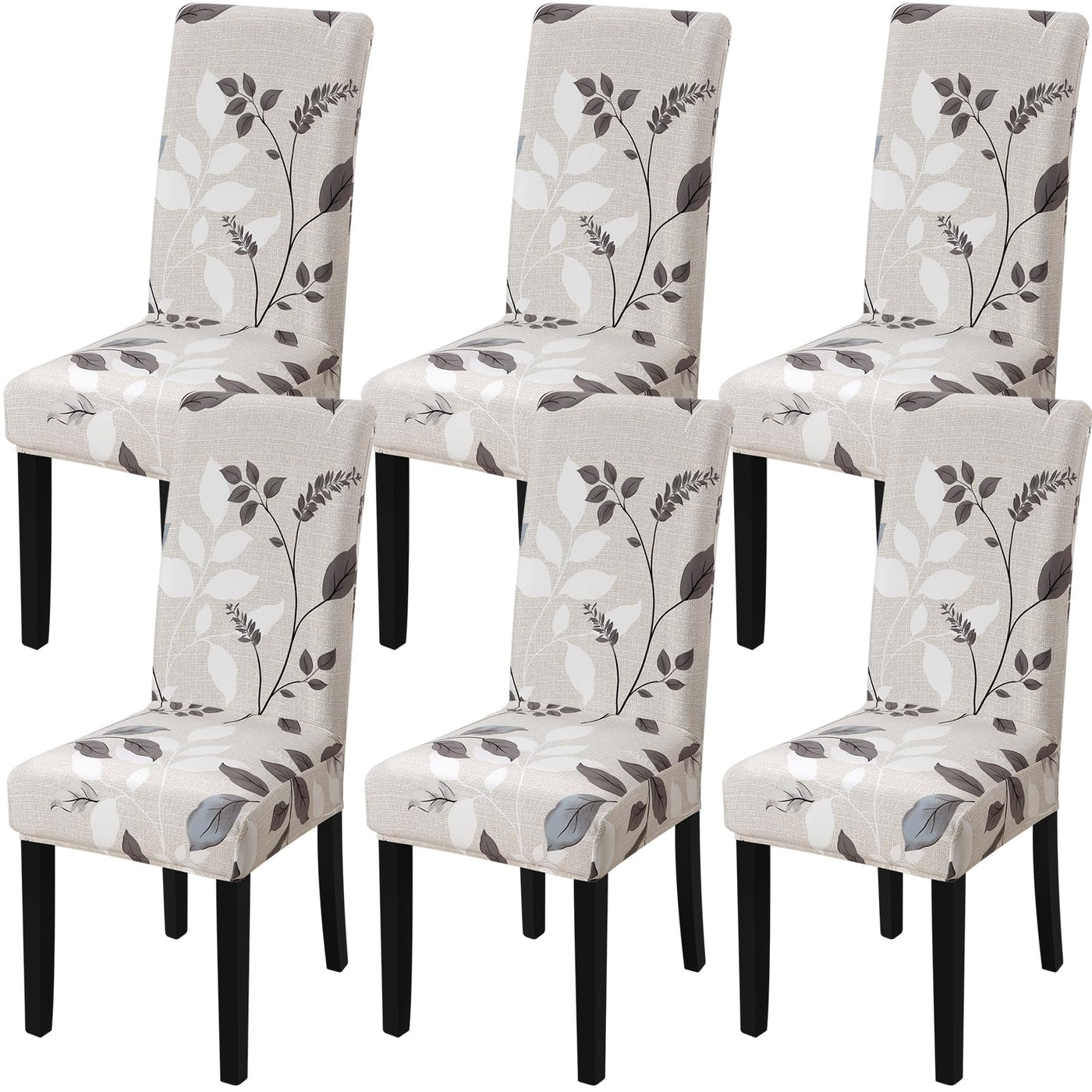 Yisun Dining Chair Covers Set Of 6, Stretch Printed Flower Dining Chair Cover, Parsons Chair Covers Removable Washable Chair Slipcover Protector For Dining Room, Kitchen, Ceremony (Leaf Pattern2)