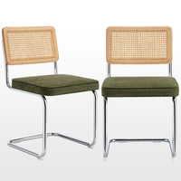 Zesthouse Natural Rattan Dining Chairs Set Of 2, Mid Century Modern Dining Chairs With Solid Wood Back & Chrome Base, For Kitche