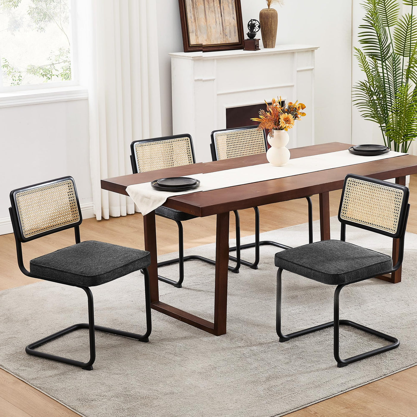 Zesthouse Natural Rattan Dining Chairs Set Of 4, Mid Century Modern Dining Chairs With Solid Wood Back & Black Matte Base For Ki