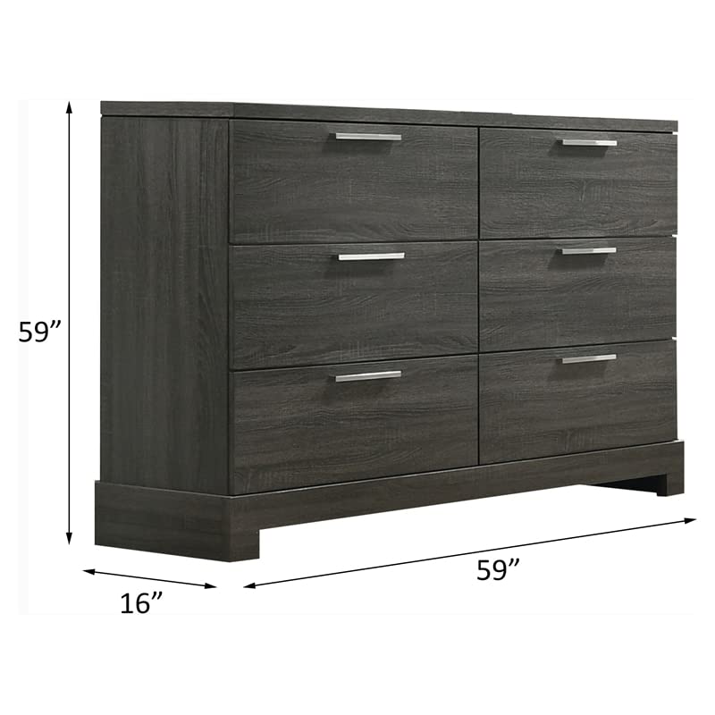 The dresser is crafted with modern elements combining matching gray oak wood with unique metal drawer pulls. Sensibly scaled for today's modern spaces, the dresser offers a fresh, clean approach to a contemporary lifestyle. If you need a dresser, it is the best choice.
