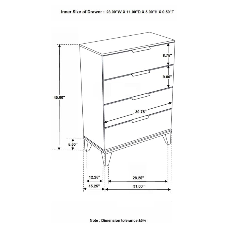 Coaster Home Furnishings Mays 4-Drawer Chest Walnut Brown with Faux Marble Top