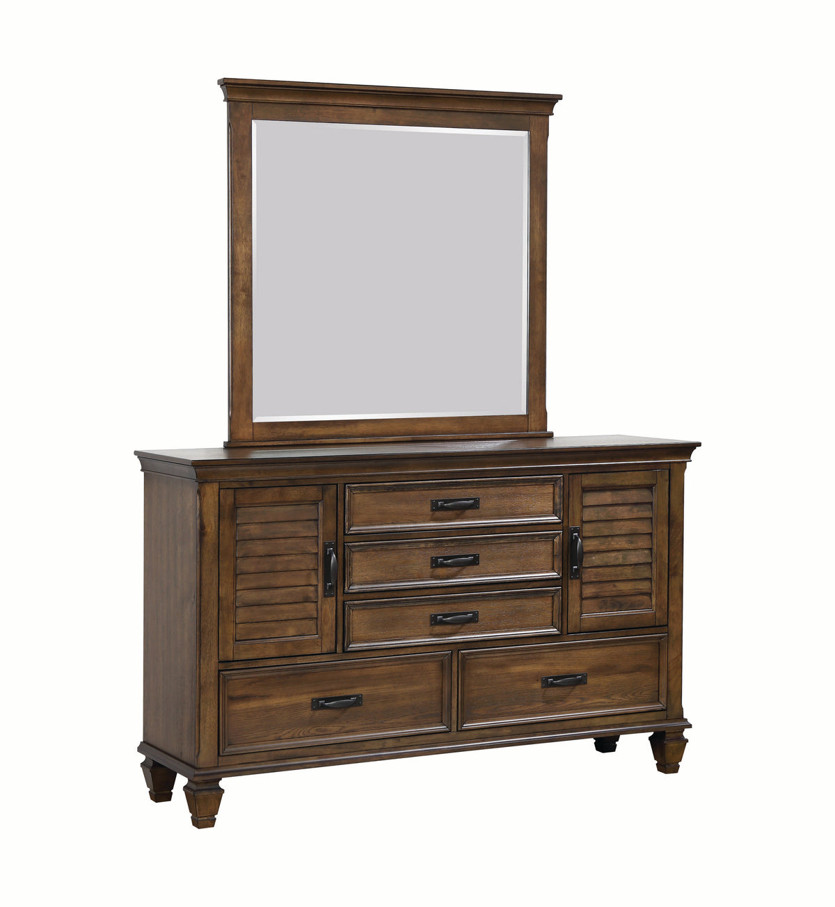 Franco 5-Drawer Dresser with 2 Louvered Doors Burnished Oak
