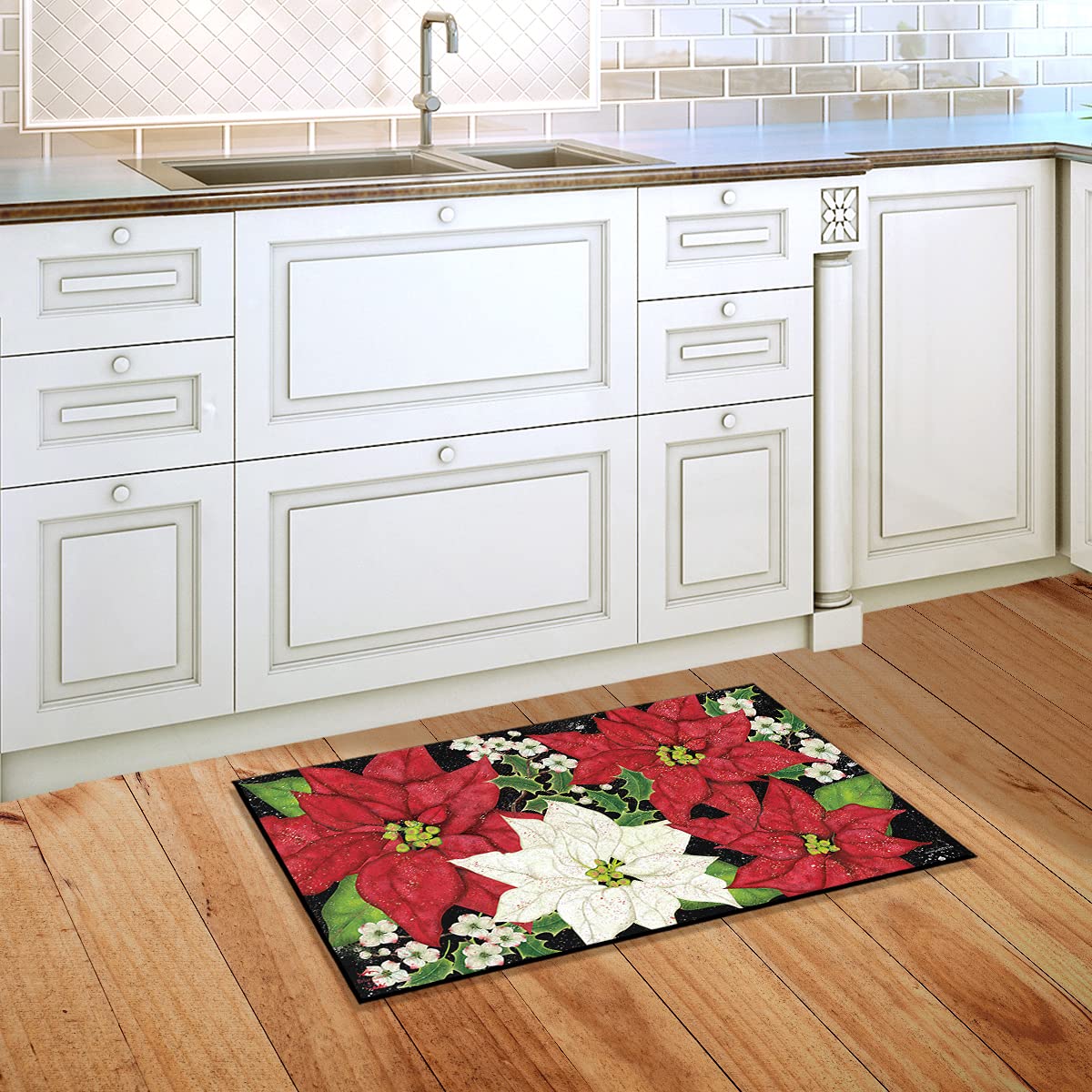 Briarwood Lane Festive Poinsettias Christmas Doormat Floral Holiday Indoor Outdoor 30' X 18'