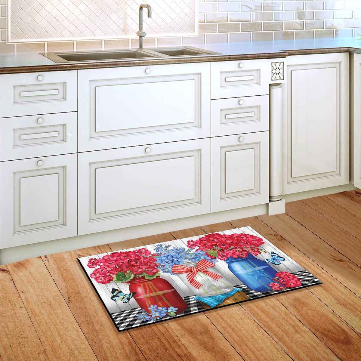 Briarwood Lane Red White And Blue Jars Floral Doormat Patriotic Rustic Indoor Outdoor 30' X 18'