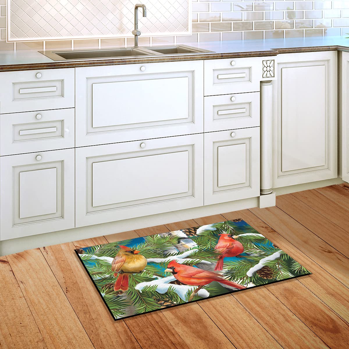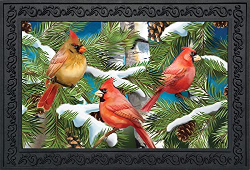 Briarwood Lane Snowy Cardinals Winter Doormat Pine Cones Indoor Outdoor 30' X 18'