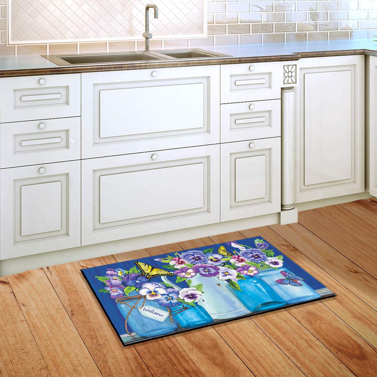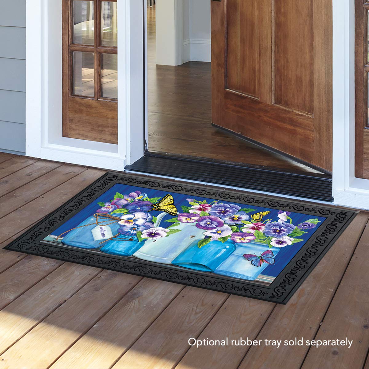 Butterflies And Pansies Spring Doormat Mason Jars Indoor Outdoor 30' X 18'
