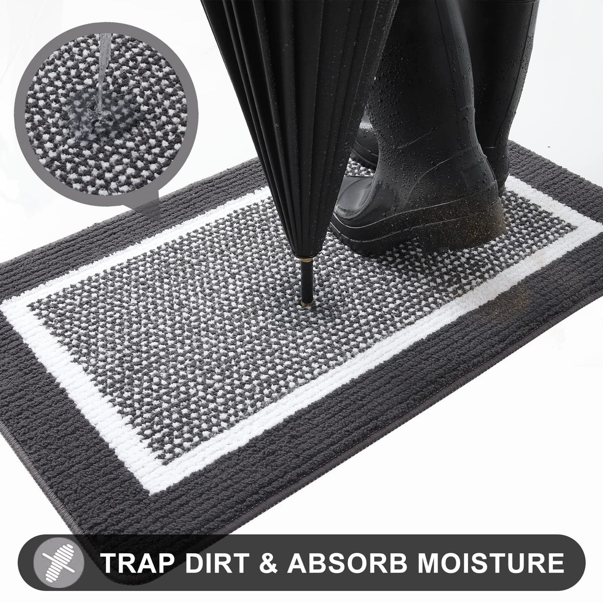 Colorxy Indoor Door Mat, Non-Slip Absorbent Resist Dirt Entrance Mat, Sturdy Low-Profile Inside Floor Carpet Mats, Washable Front Entry Doormats For Entryway, 59''X20'', Dark Grey