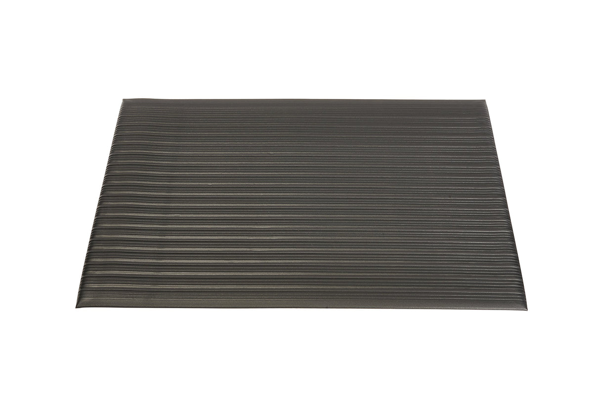 Anti-fatigue mat offers 3/8 thick vinyl foam structure to provide support that reduces fatigue and discomfort. ribbed surface increases safety.