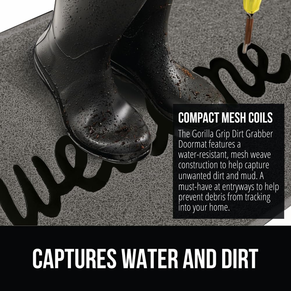 Dirt Grabber Mesh and Deep Grooves The Gorilla Grip Dirt Grabber Doormat is designed with a unique mesh weave construction to help capture dirt, mud and other messy, unwanted debris from tracking into your home.