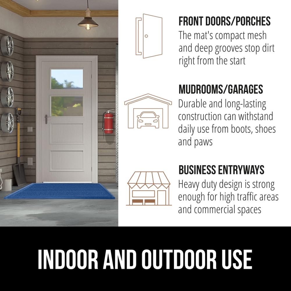 Gorilla Grip Dirt Grabber Mesh Door Mat, Low-Profile, Stain And Fade Resistant Heavy Duty Quick Dry Striped Doormat, Mats For Indoor Outdoor Entry, Shoe Scraper, Garage Entrance Mat, 47X35, Blue