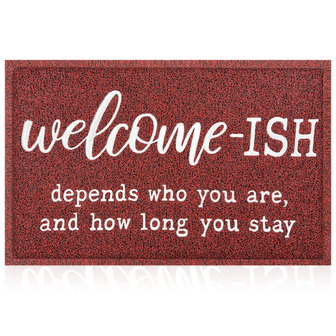 Jjuuyou Welcome Mats Front Door Mat Outdoor Entryway With Anti Slip Rubber Back Funny Indoor Welcome-Ish Depends Who You Are And