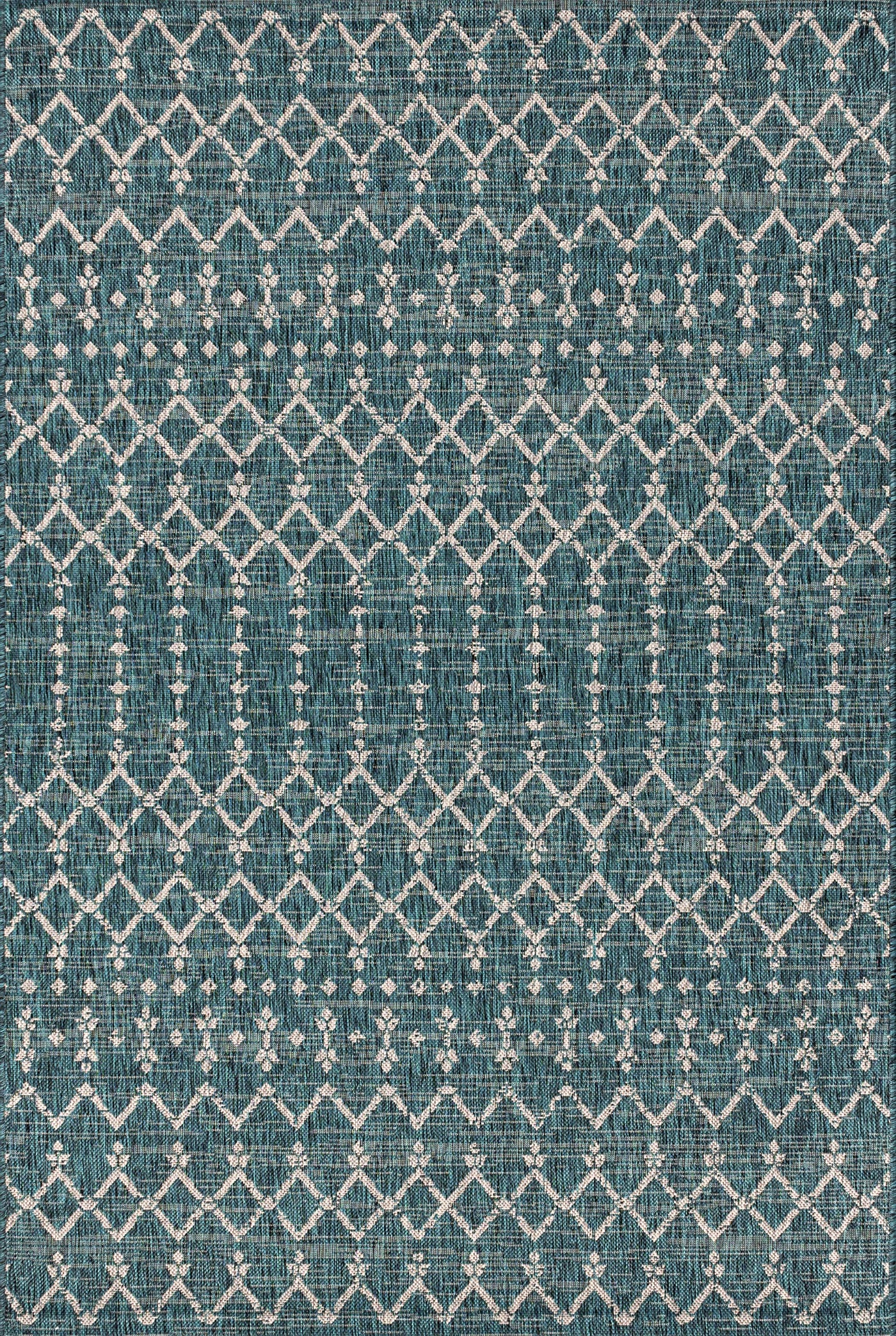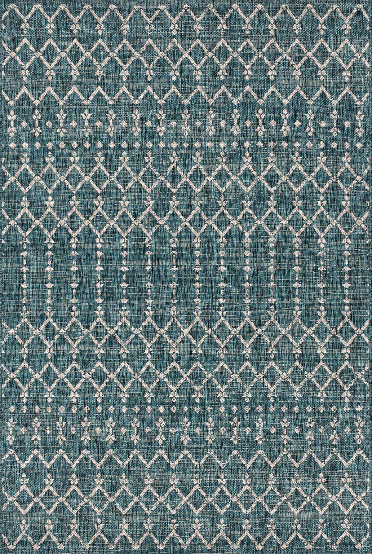 Jonathan Y Smb108C-5 Ourika Moroccan Geometric Textured Weave Indoor Outdoor Area-Rug, Bohemian, Rustic, Scandinavian Easy-Cleaning,Bedroom,Kitchen,Backyard,Patio,Non Shedding, Teal/Gray, 5 X 8
