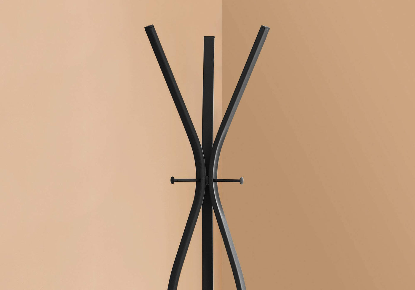 Complete the functionality of your home with this contemporary coat rack. Beautiful 72" high cappuccino metal legs provide sturdy support and bring plenty of stylish storage into your living space. With 3 hanging pegs, this coat rack makes it simple to organize your entryway, hallway, bedroom, home office, or bathroom. A modern and chic look complete its stylish appeal.