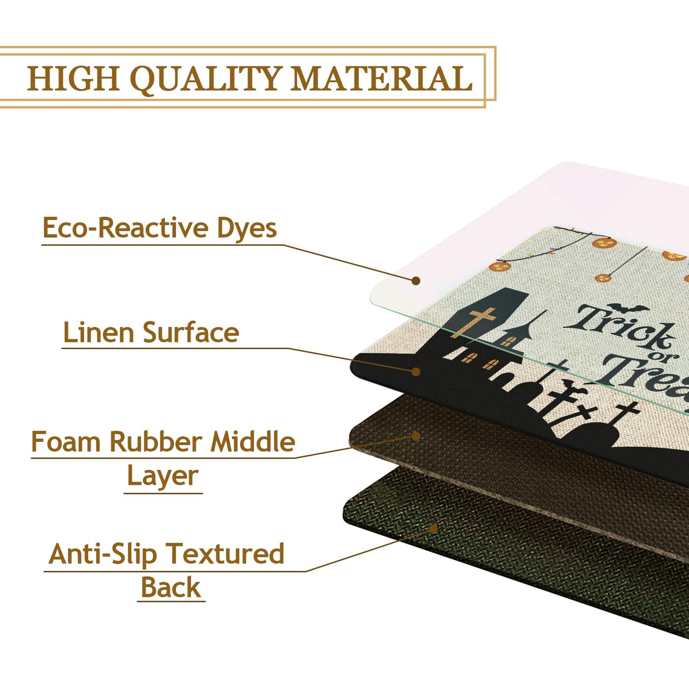 Q: Is the Halloween door mat slip-resistant?A: Yes, the Halloween door mat features a high-quality non-slip rubber backing that prevents it from bunching or shifting, ensuring safety and stability.