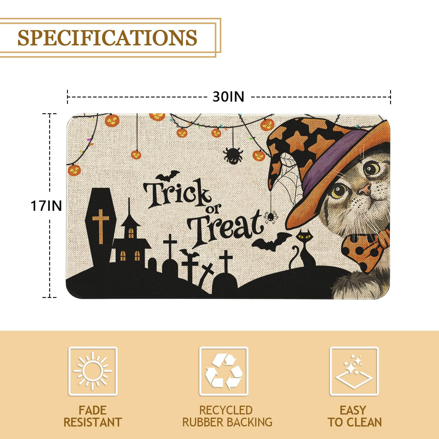 Halloween Door Mat 30 X 17 Inch Trick Or Treat Cat Doormat Indoor Outdoor Entrance Halloween Floor Mat Non Slip Halloween Decor Rubber Welcome Mats
